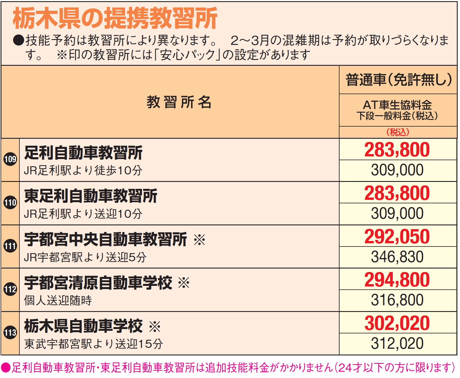 栃木県・群馬県以外の教習所についてはパンフレットをご覧ください。