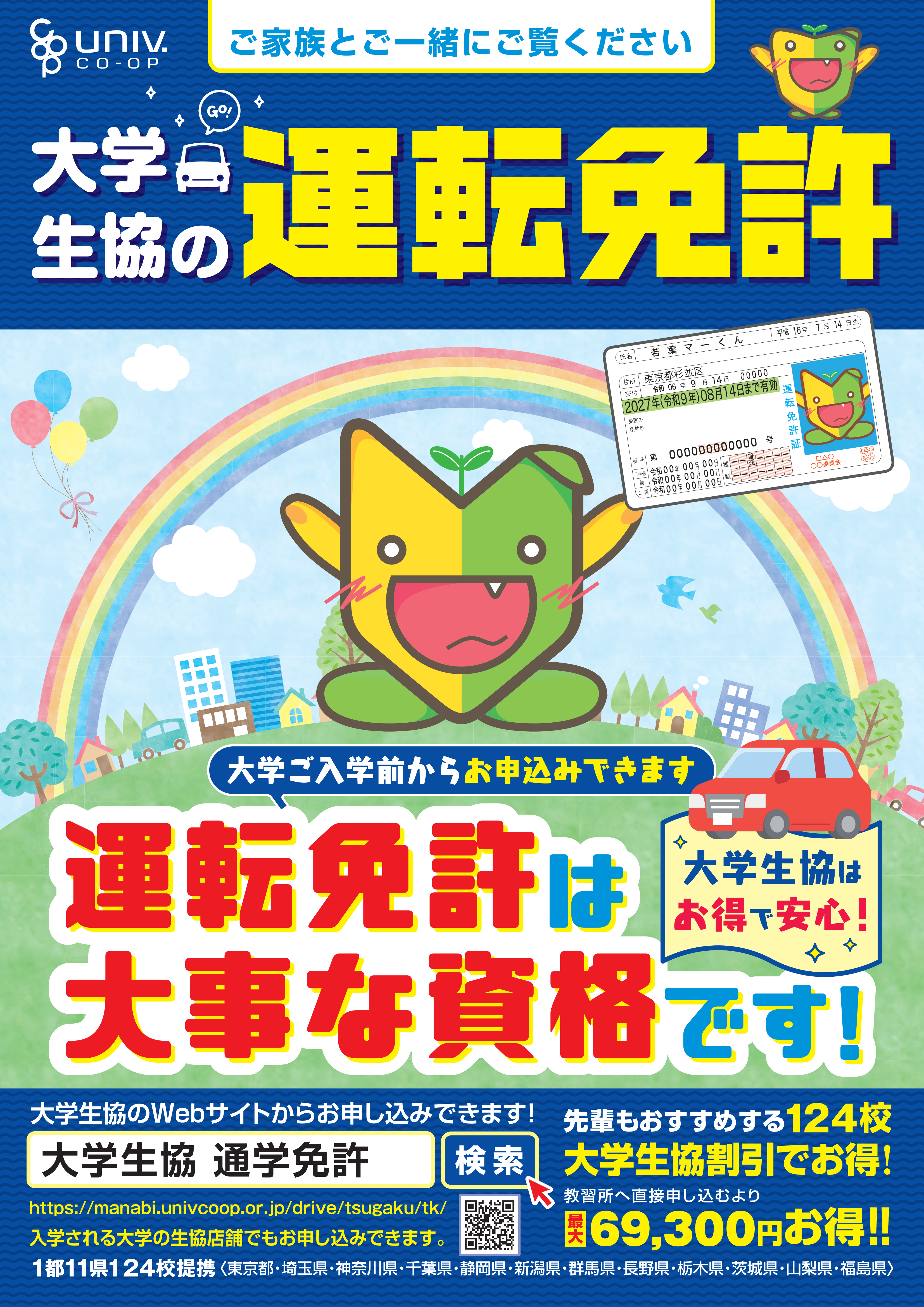 ましょう。高校卒業までに取得できるチャンスがあれば、ぜひ大学生協にてお申し込みください。