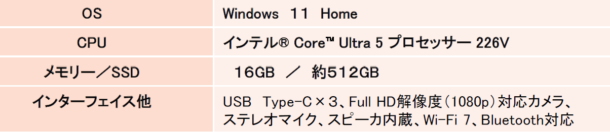 ●CPU:Core-Ultra5、メモリ:16GB、SSD:約512GB 次世代のAI機能を搭載でCopilot+ PCに対応