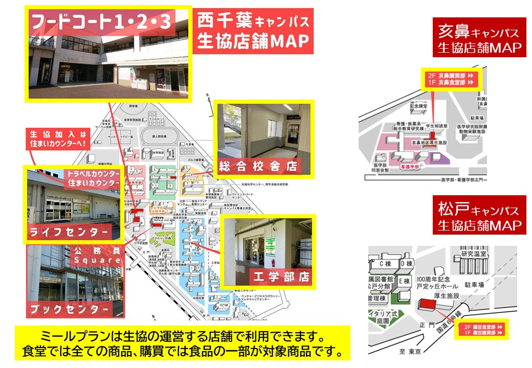 ライフセンターサービスカウンター・ブックセンター・総合校舎店・亥鼻購買部・園芸購買部にて承ります。
