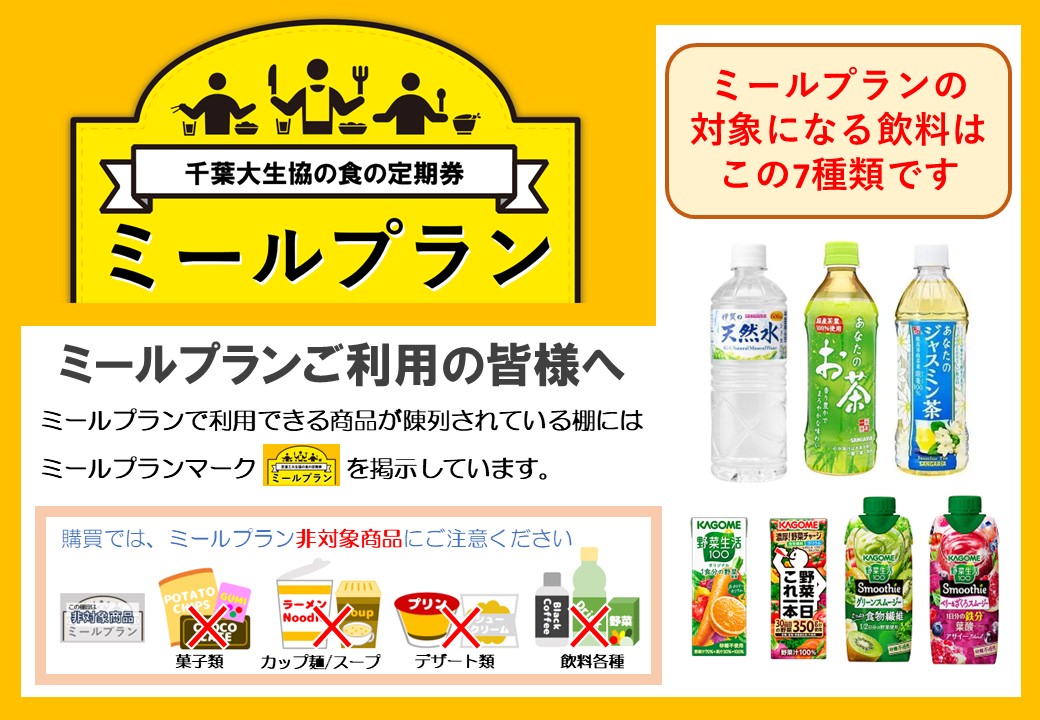 経済的な理由などで「食費を削る」ことがないよう、1日利用可能金額まで財布の中身を気にせず安心して利用できるサービスが、ミールプランです。年間まとめ払いで割引により安価に利用できます。毎日「ちゃんと食べる」が基本です。