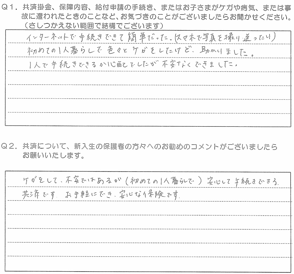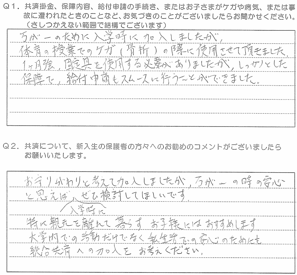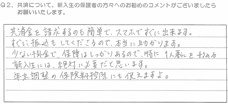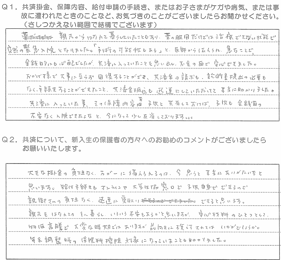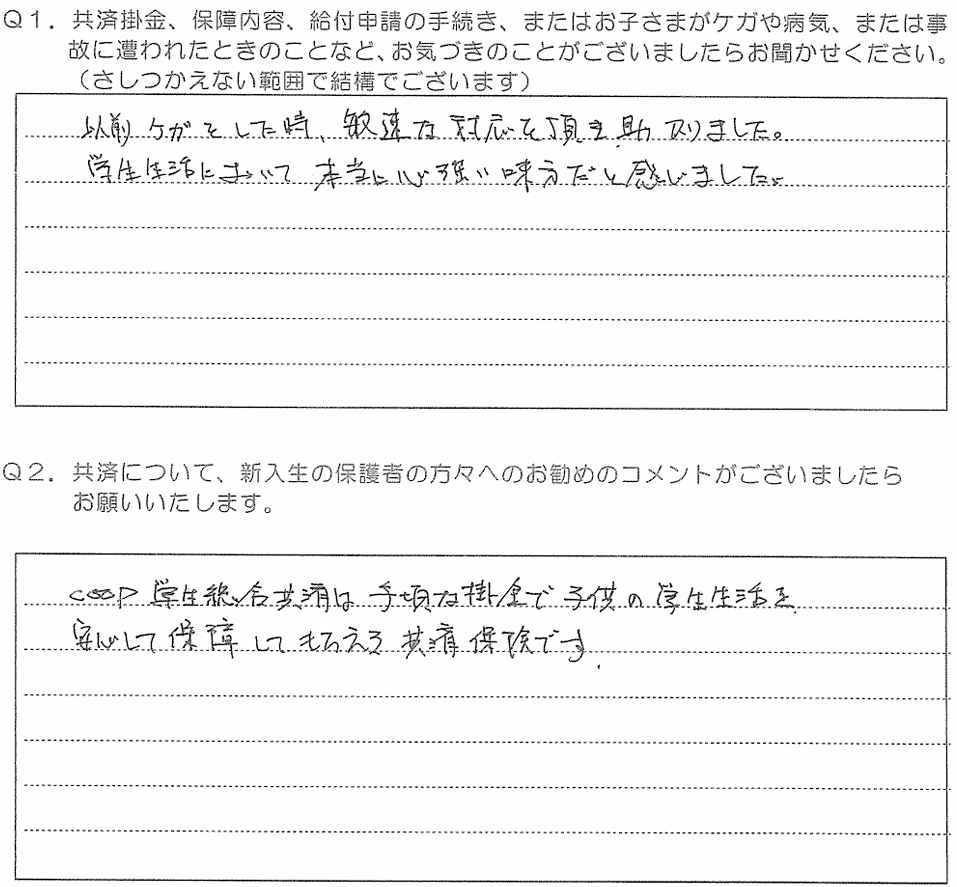 保護者に聞く「CO・OP学生総合共済アンケート」