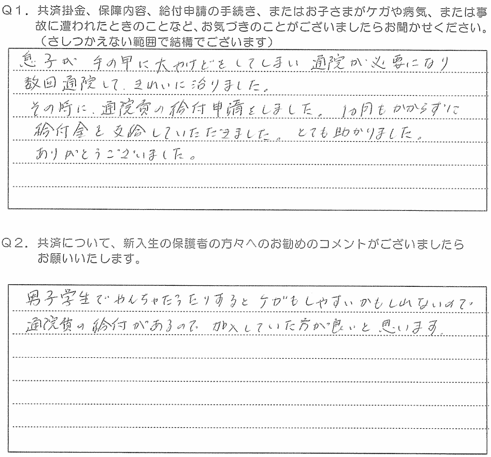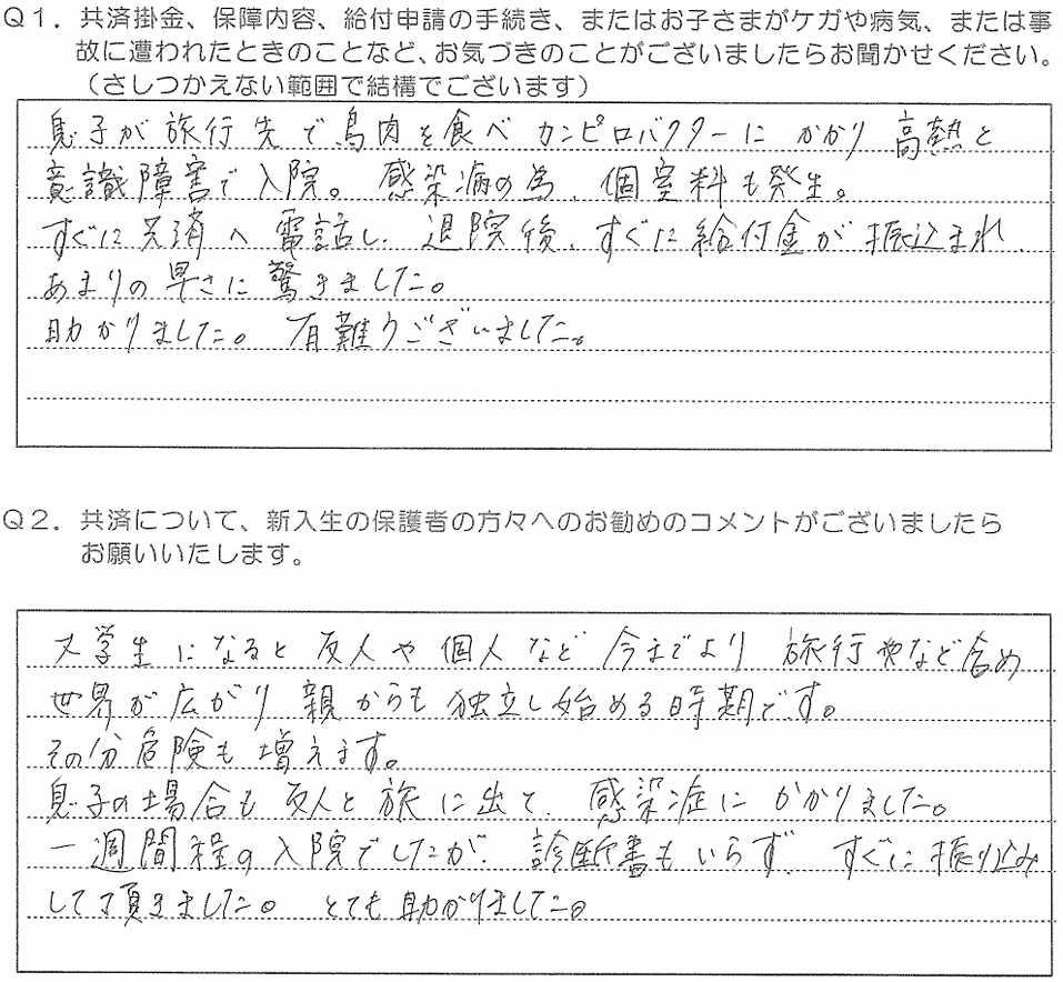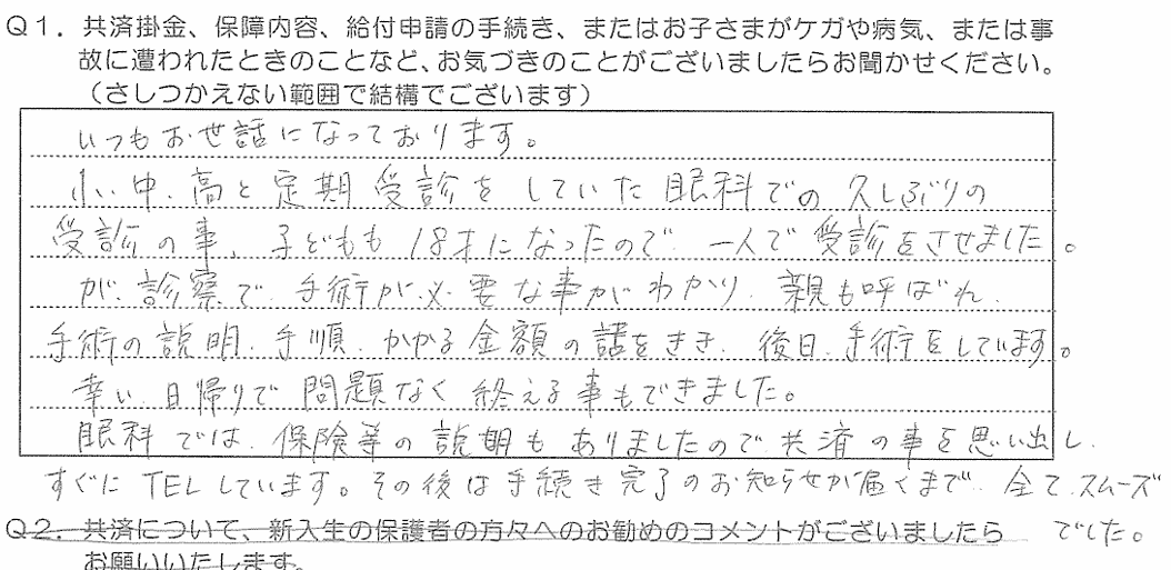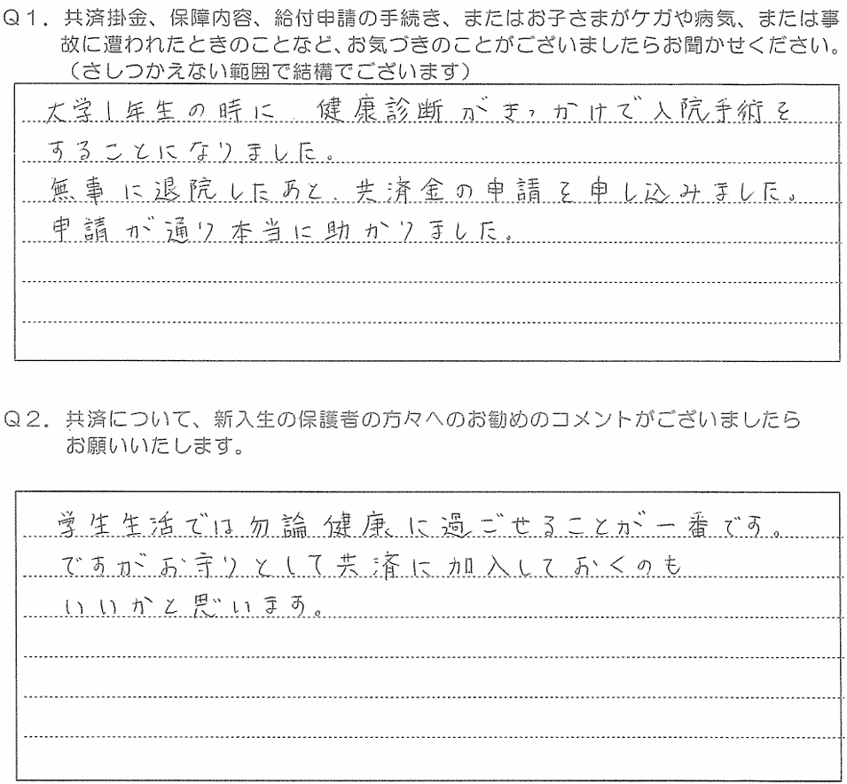 保護者に聞く「CO・OP学生総合共済アンケート」