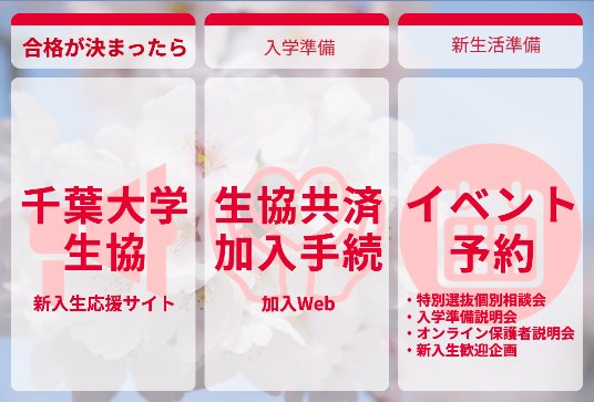 - 千葉大学生協入学準備ガイドブック →電子ブック版はこちら