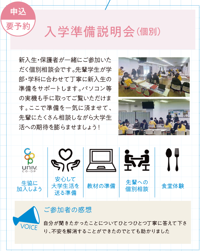 ・様々な質問に対して丁寧に対応してくださって、入学前に気がかりだったことなどの話ができて良かったと思います