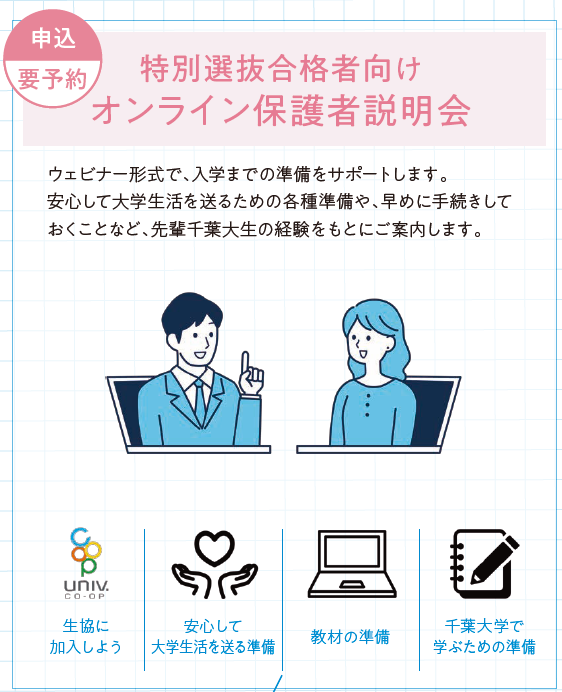 将来に向けて千葉大学で充実した学生生活を送ってほしいというのが保護者の皆様の願いだと思います。