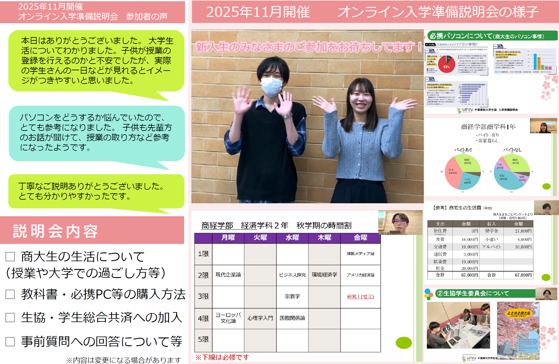 ※この説明会は大学の公式行事ではありませんので、本件に関するお問い合わせは千葉商科大学生協までお願いいたします。