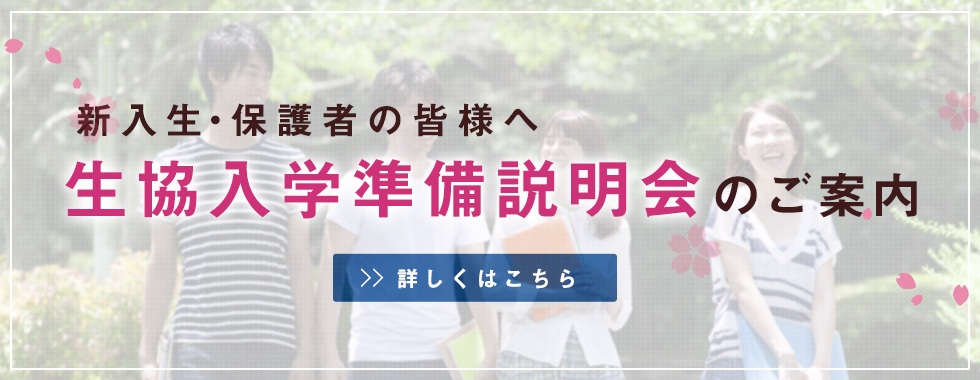 ・入学準備資料:ご入学後も生協本部でお渡しできます。