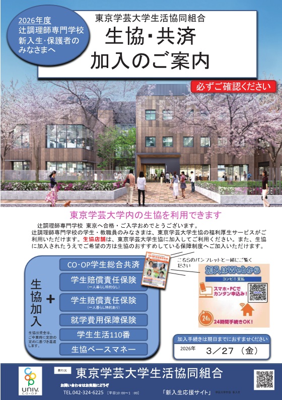 ~学芸大生協は辻調理師専門学校東京の学生のみなさまのご利用をお待ちしています~