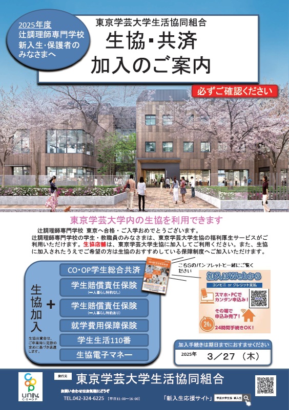 東京学芸大学と辻調理師専門学校東京との協力により、辻調理師専門学校の学生も福利厚生施設として東京学芸大学生協を利用できるようになりました。生協をご利用いただくためにまずは生協加入をお願いします。