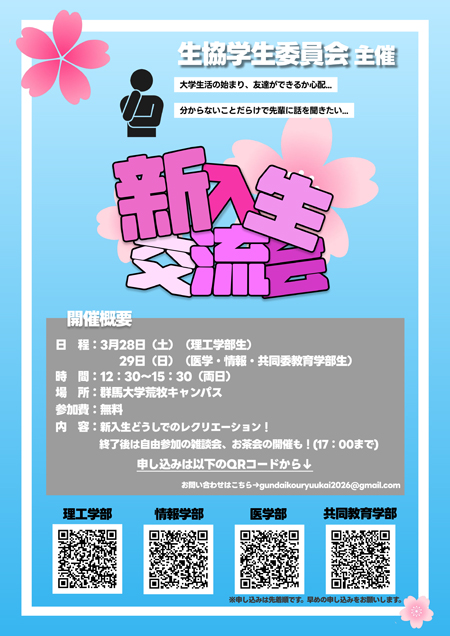 群馬大学の先輩、生協学生委員会が主催する新入生交流会に参加しませんか?