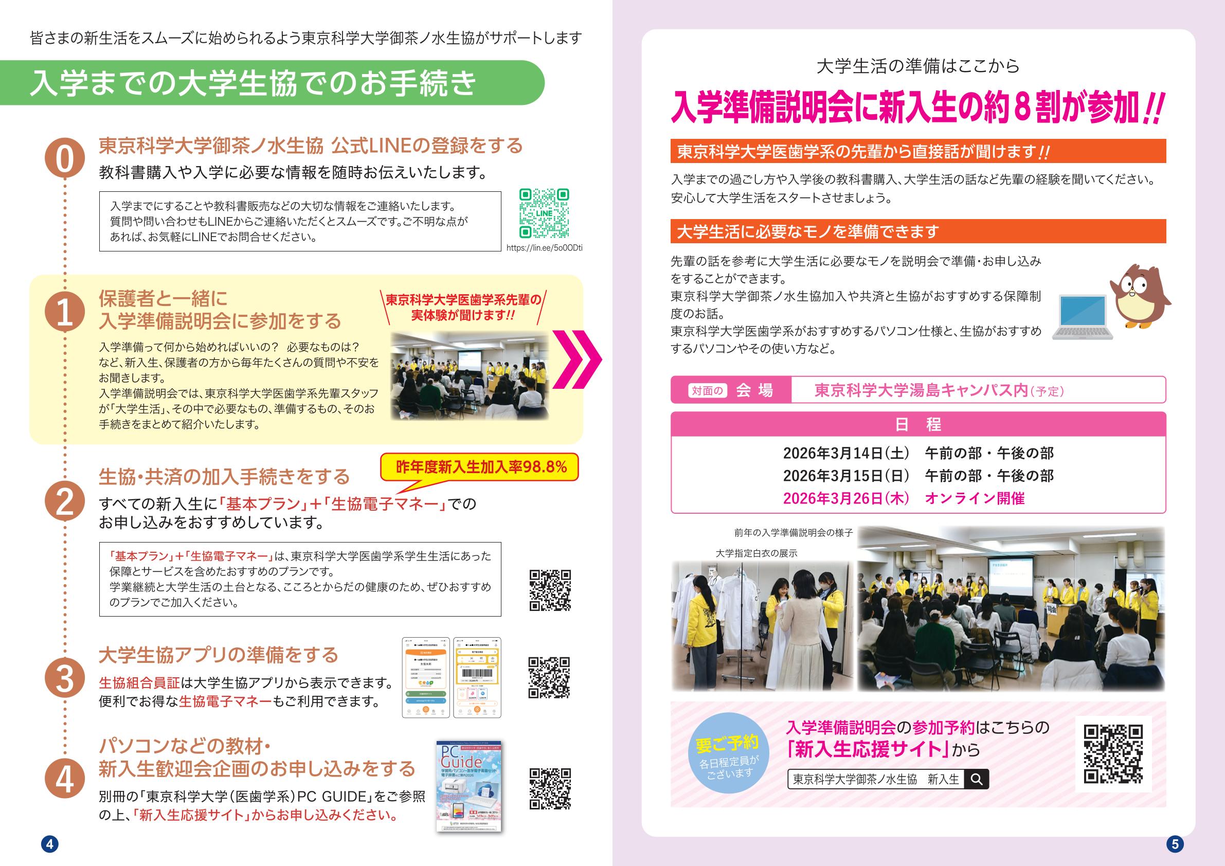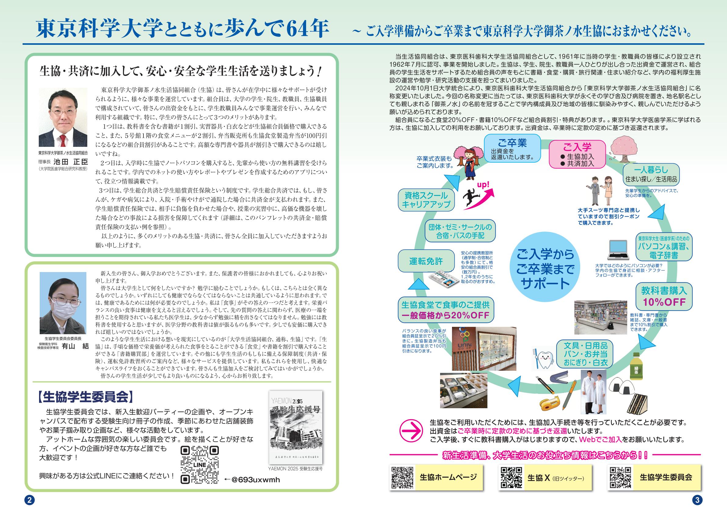 湯島地区では4店舗運営し、SCIENCE TOKYO(医歯学系)組合員の生活を支えております。国府台地区は店舗が有りませんが、教科書教材の出張販売や各種オンライン販売などを行い、勉学中心に支えております。新入生のみなさん全員が組合員となり、積極的に生協を活用していただくことをお願いいたします。