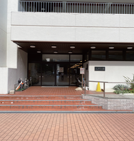 ①七十年館にはいります ②入口すぐの階段をあがります ③生協が見えてきます