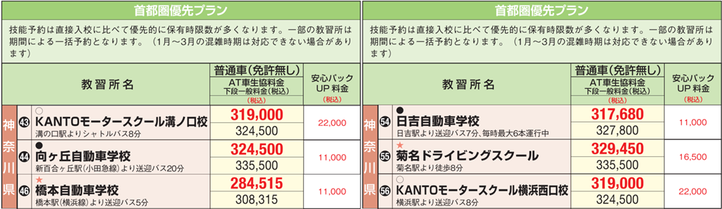 - 首都圏優先プランでは技能予約は一般予約(1〜3時間)に対して、優先的に常時6時間保有以上、または、段階毎の一括予約ができます(1月下旬から3月の混雑時期は技能教習が希望通り取れなくなる場合があります)。
