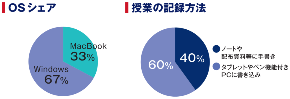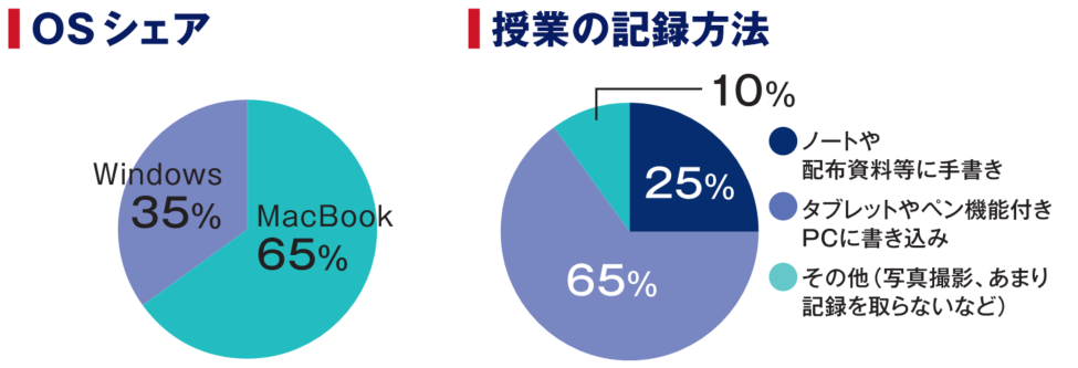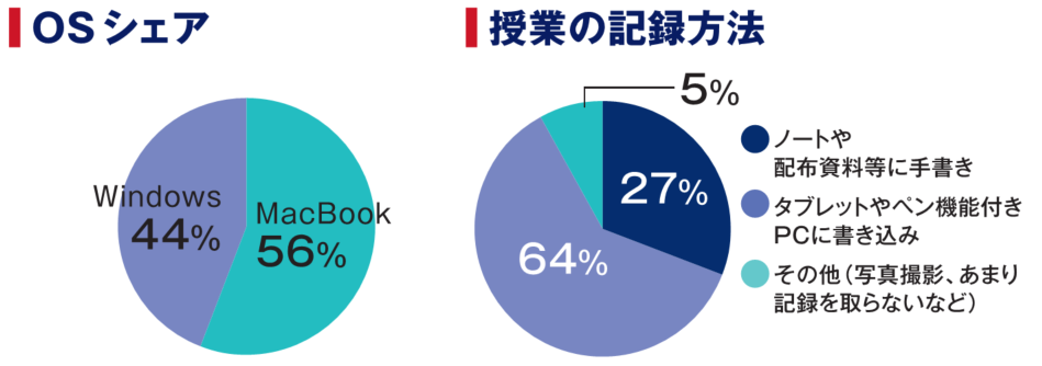 文学部の先輩のコメントでは、「Windowsを前提としている授業もある」とのこと。MacBookでも問題はありませんが、友達や友人に聞く必要のある場面は出てくるかと思います。文学部には、PDF資料に直接書き込めて、1台でスマートに持ち運べる