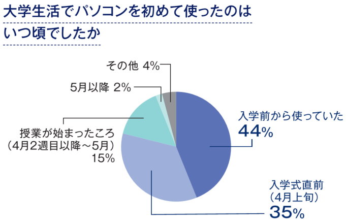 BYOD(ノートパソコン必携化)があるため、推奨仕様を満たした個人所有のパソコンを入学ガイダンスまでに