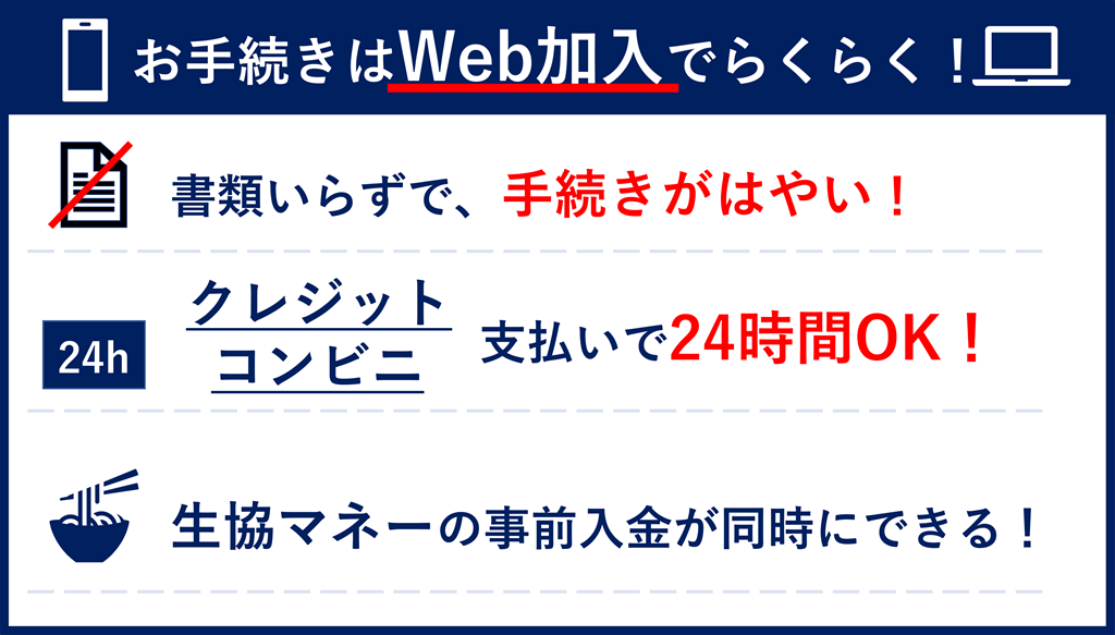 生協の店舗やサービスのご利用のためには、組合員になっていただく必要があります。