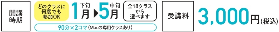 Macでの受講も可能ですが、初めてMacを使われる方はこのコースと一緒に「準備講座」への参加をお勧めします。
