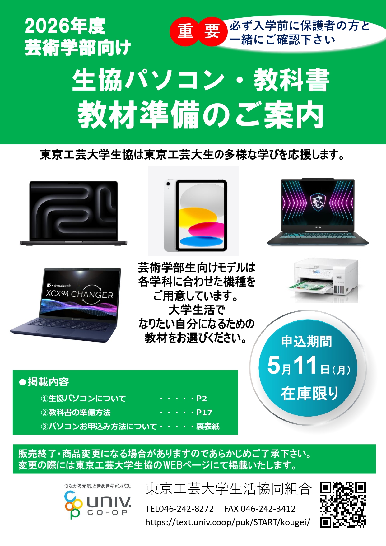 iMacやMacBookAir等、本ガイドブックに非掲載のモデルは生協のお店に直接ご相談、お申込みください。