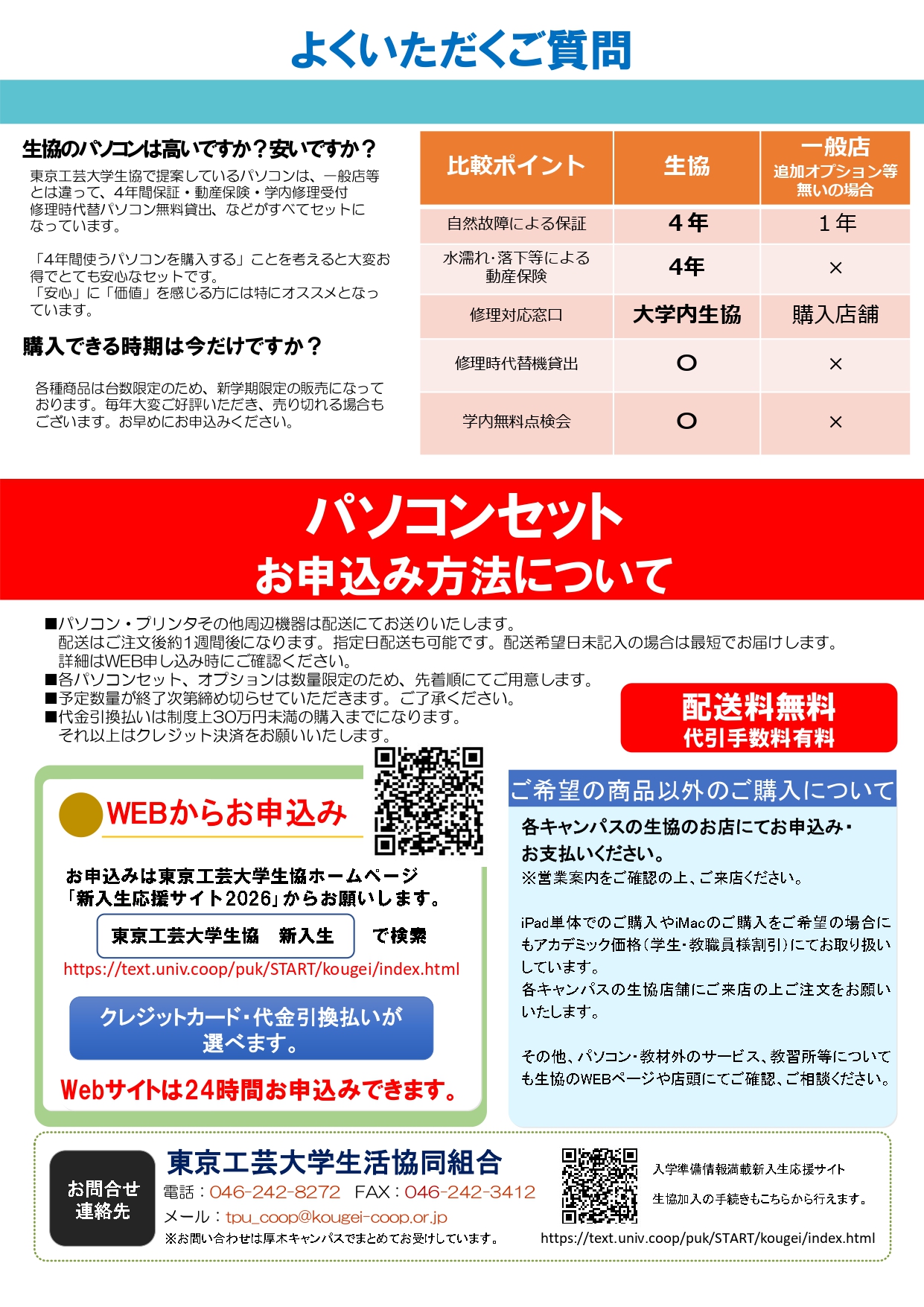 東京工芸大学生協推奨パソコンは「4年間保証」 「4年間動産保険」が付いているので、大学生活中、安心して使用し続けられる機器になっています。