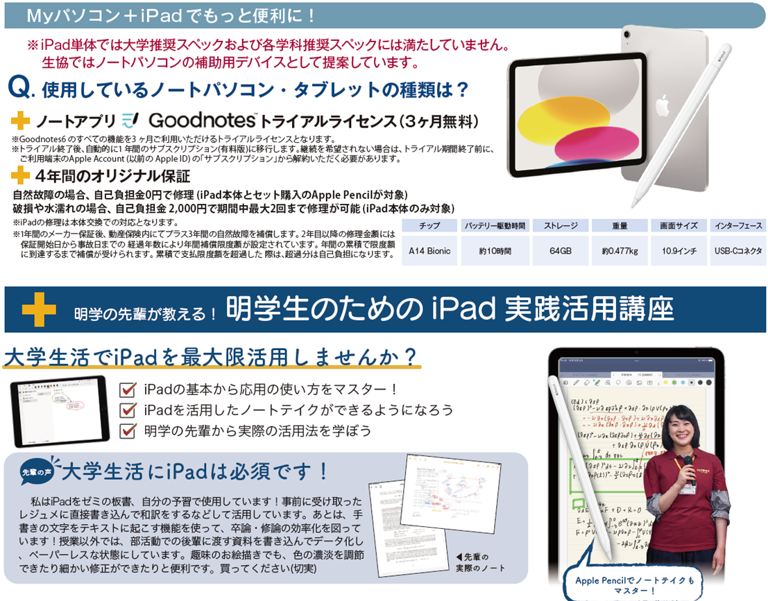 明治学院大学学修用パソコン・プレミアムサポートパス・PCスキルアップ講座・iPad、iPad実践活用講座、プリンター・DICTOOL(語学系辞書)・WiMAX+5Gの詳細はこちら