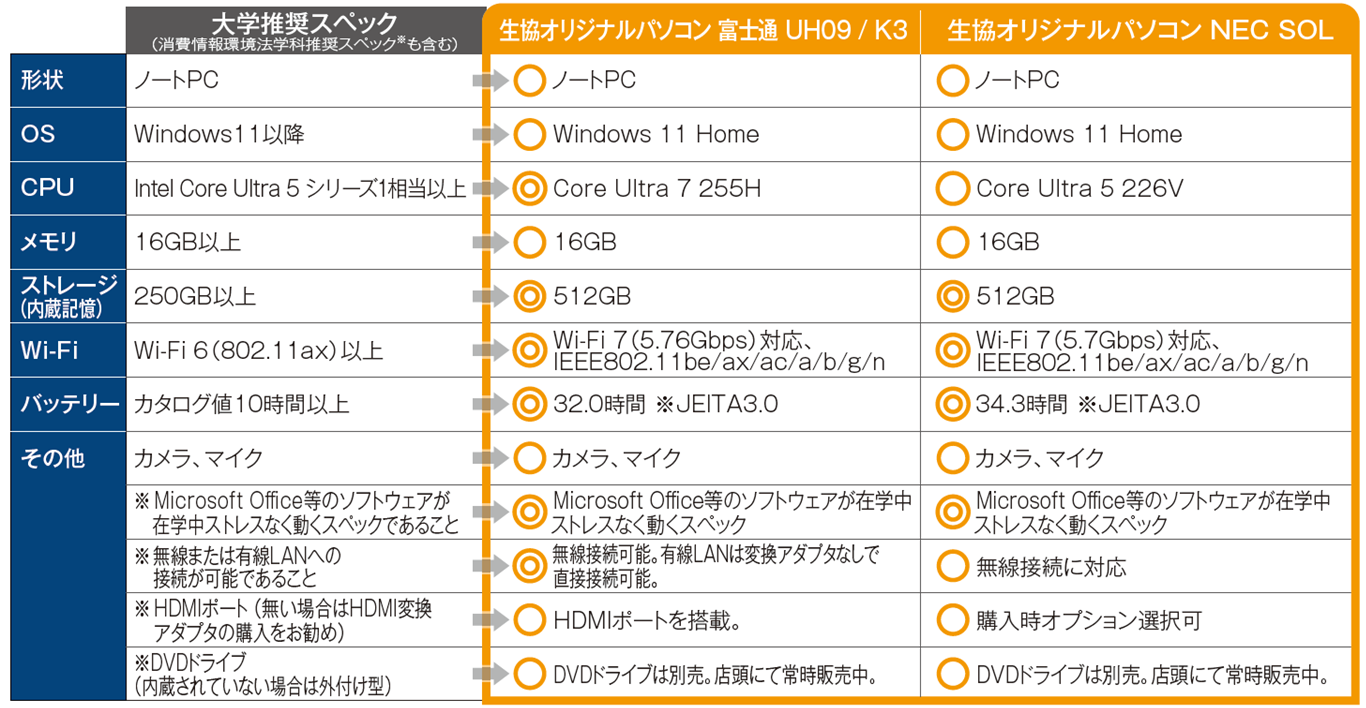 明治学院生協は大学4年間、その後も安心して使える性能を有したパソコンを用意しています。