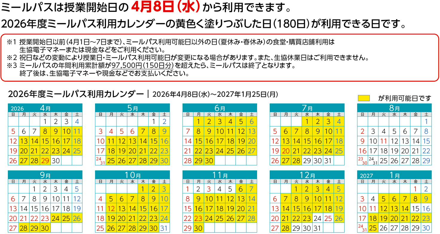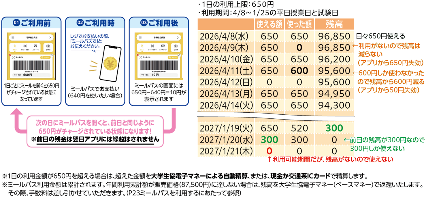※ミールパスをご使用するには、事前の大学生協アプリの登録が必須となります。