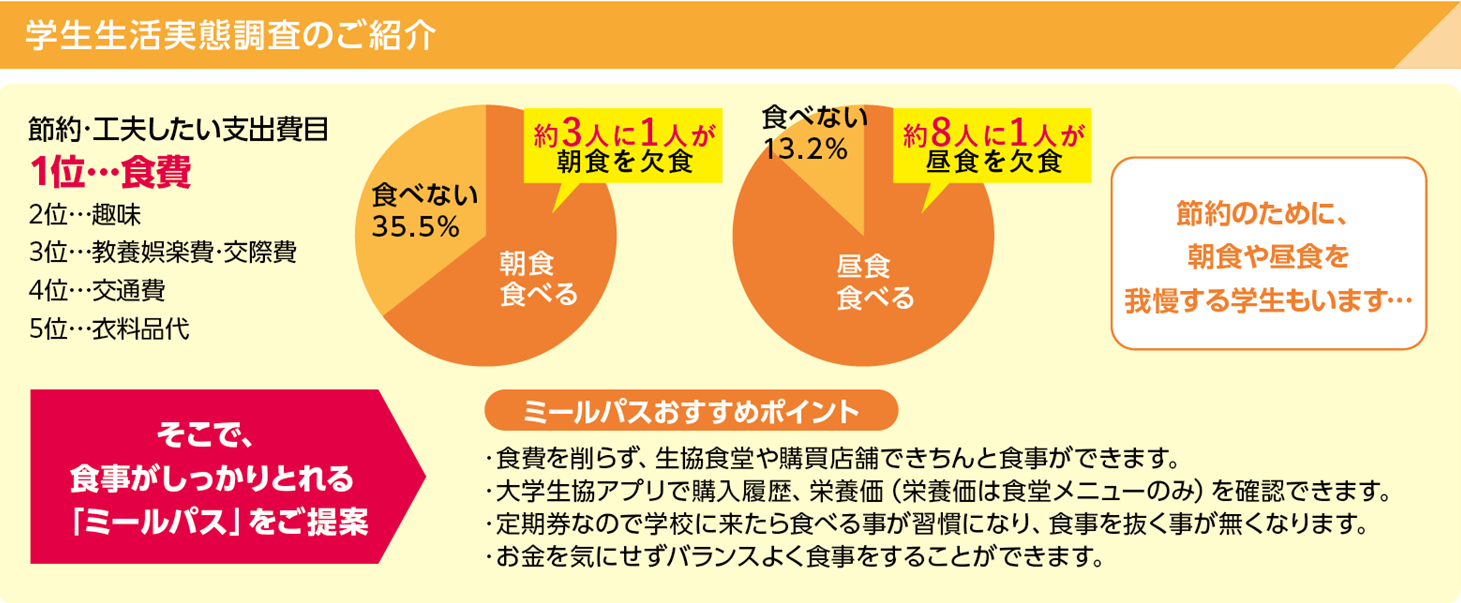 | 食の定期券 ミールパスが安心で健康な大学生活をサポート |