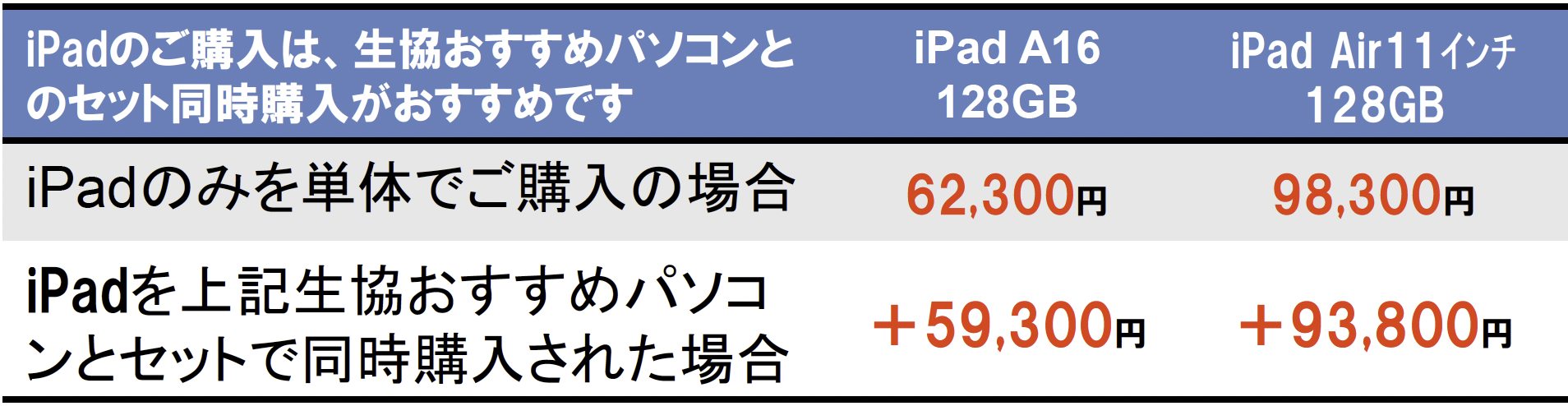 | 生協パソコン購入者 特別価格 |