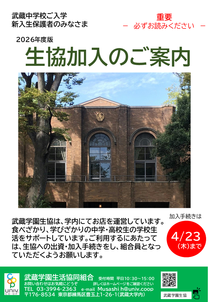 生協加入のご案内(武蔵中学校ご入学のみなさま)