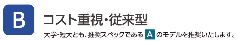 コスト重視・従来型。新潟青陵大学・短期大学での使用要件は満たしていますが、推奨スペックである[A]のモデルを推奨いたします。