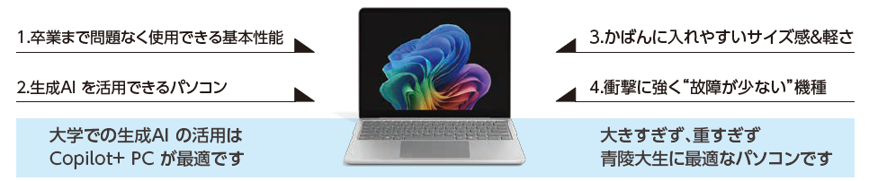 AI搭載(Copilot+ PC)。青陵大のAI学習に最適な推奨モデル。
