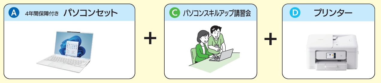 生協では学修に必要なスキルアップも提供しています。パソコン初心者でもスキルアップができる「無料のセットアップ講習会」「有料のスキルアップ講習会」をご用意しています。