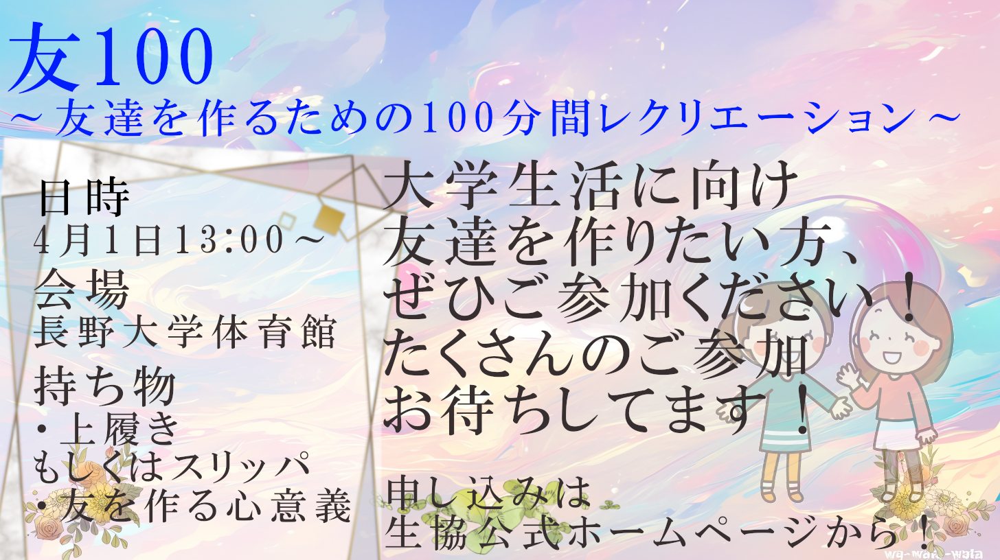 友100に参加してこれからの大学生活を一緒に過ごす友達をたくさん作りませんか!!