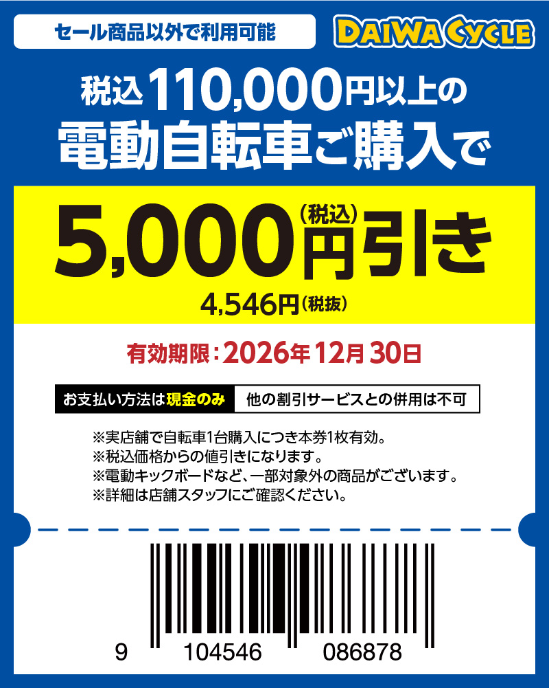 ダイワサイクル全店で使用可能!ご家族もご利用できます。