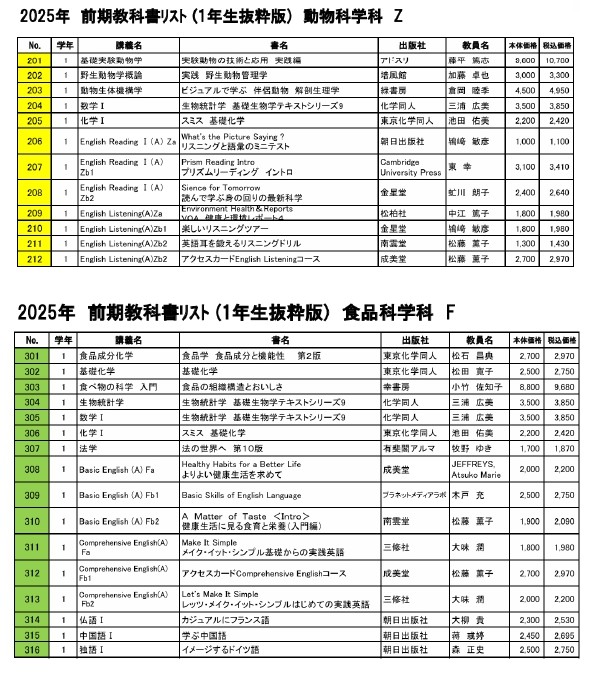 - ただし、教科書販売期間内に購入しないと、授業に間に合わない場合がありますのでご注意ください。遅れて入荷の教科書を除き、販売期間外では、購入しにくい教科書があります。