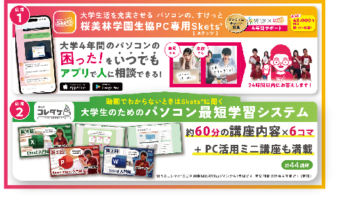本学では、在学中にMicrosoft Office 365の無償提供を通して皆さんが所有するPCの活用を支援しています。PCを持っていない人はぜひ購入を検討してください。大学生活の4年間は、最初から最後までサプライズの連続です。使い方に困ったときの窓口、故障時の代替機の用意など、欲しい支援が身近にあると理想的です。「しっかり備えてチャンスを楽しむ」、そんな大学生・社会人になってください。