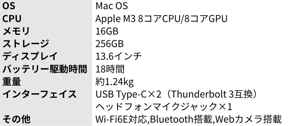 C. MacBook Air 13インチ(M3/スターライト)