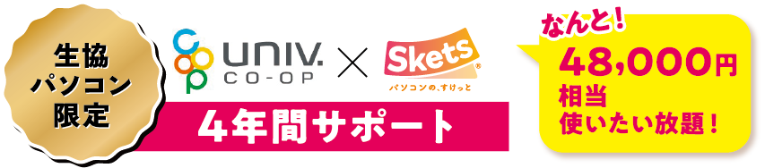 生協の学修パソコンにはチャットによる相談サービス「Skets」が無料付帯しています。