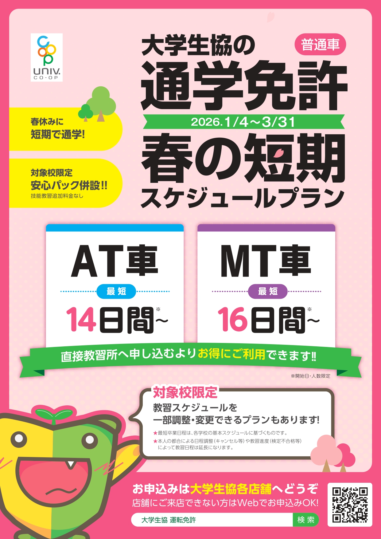 ●入学前は、以下の大学生協の運転免許のサイトからお申込みください。