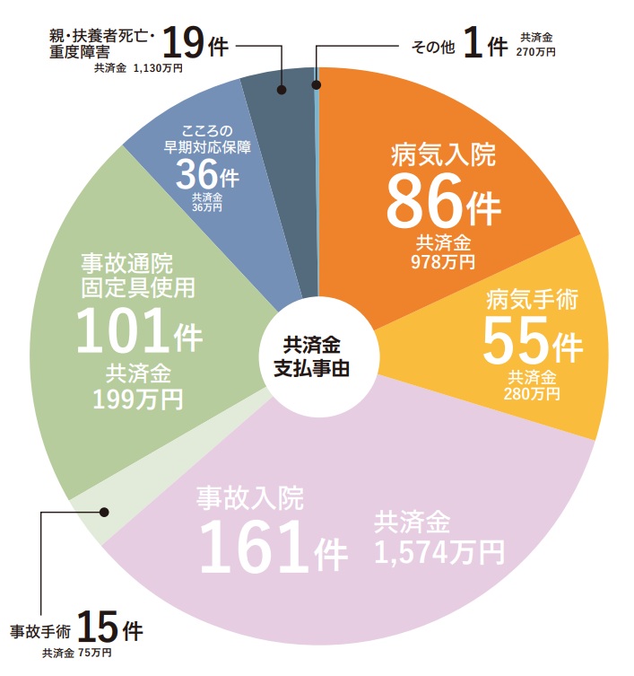 - 学生の生活時間は正課内より正課外の方が長く、正課外の保障も必要です。他の制度と掛金や保険料のみを単純に比較するのではなく、保障内容や付帯サービス、支払い実績などを含めて総合的にご判断いただきたいものです。