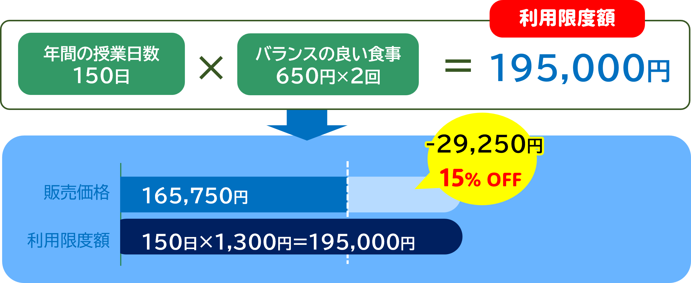 年間の授業開講日(150日)に利用でき、毎日、大学生協アプリに1日の利用限度額がチャージされます。