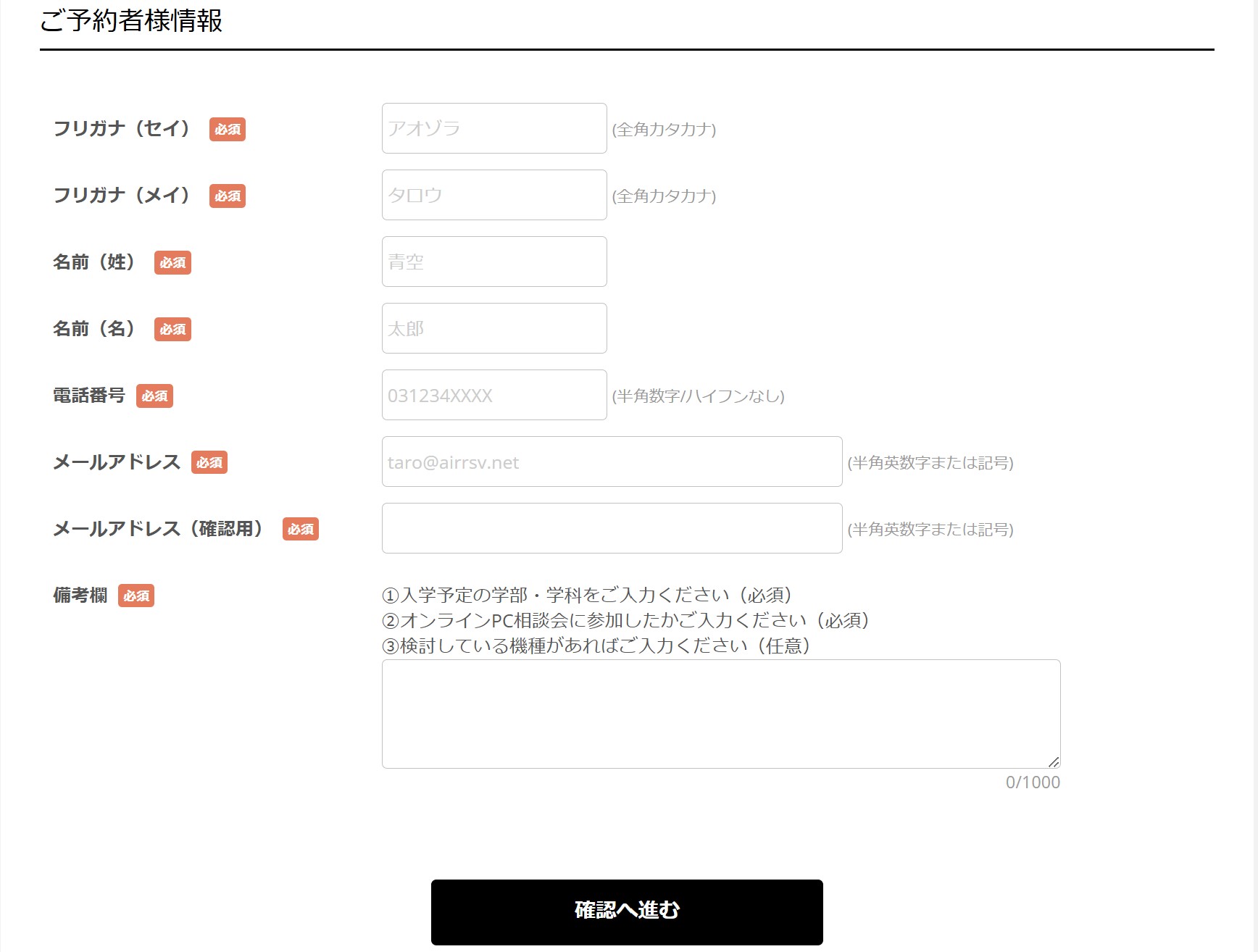 なお、予約人数について、何人で来られても1家族としてカウントいたしますので、上記AirRESERVEの「予約人数欄」は「1」のまま変更しないようにお願いします。「1」以外の数字を入力された場合、こちらで修正をさせていただきます。