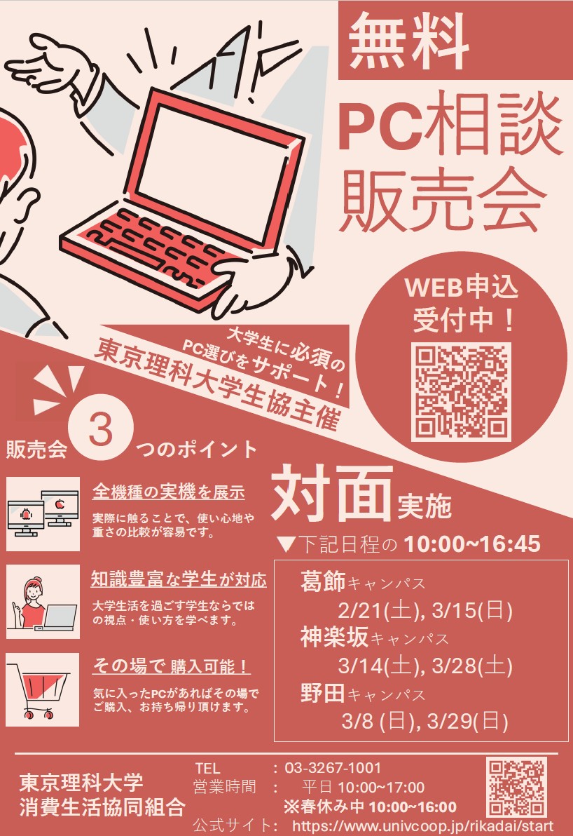 ※3/28(土)の神楽坂開催・3/29(日)の野田開催については、パソコンの在庫状況により開催できるかどうかを決めます