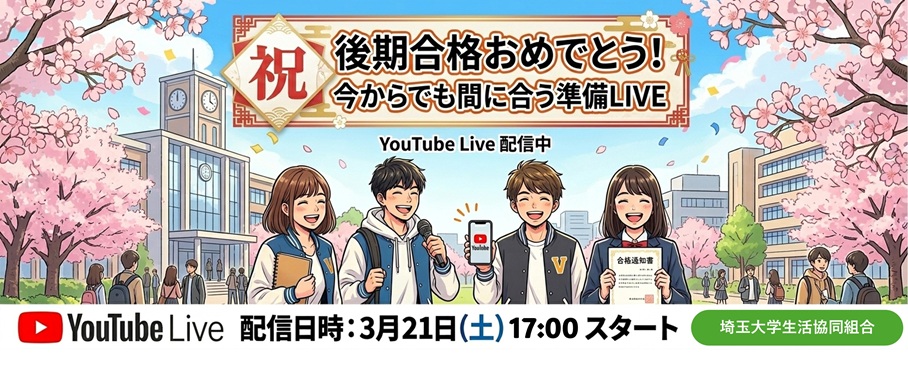 【一般前期合格者】生協加入手続き締め切り 3月16日まで