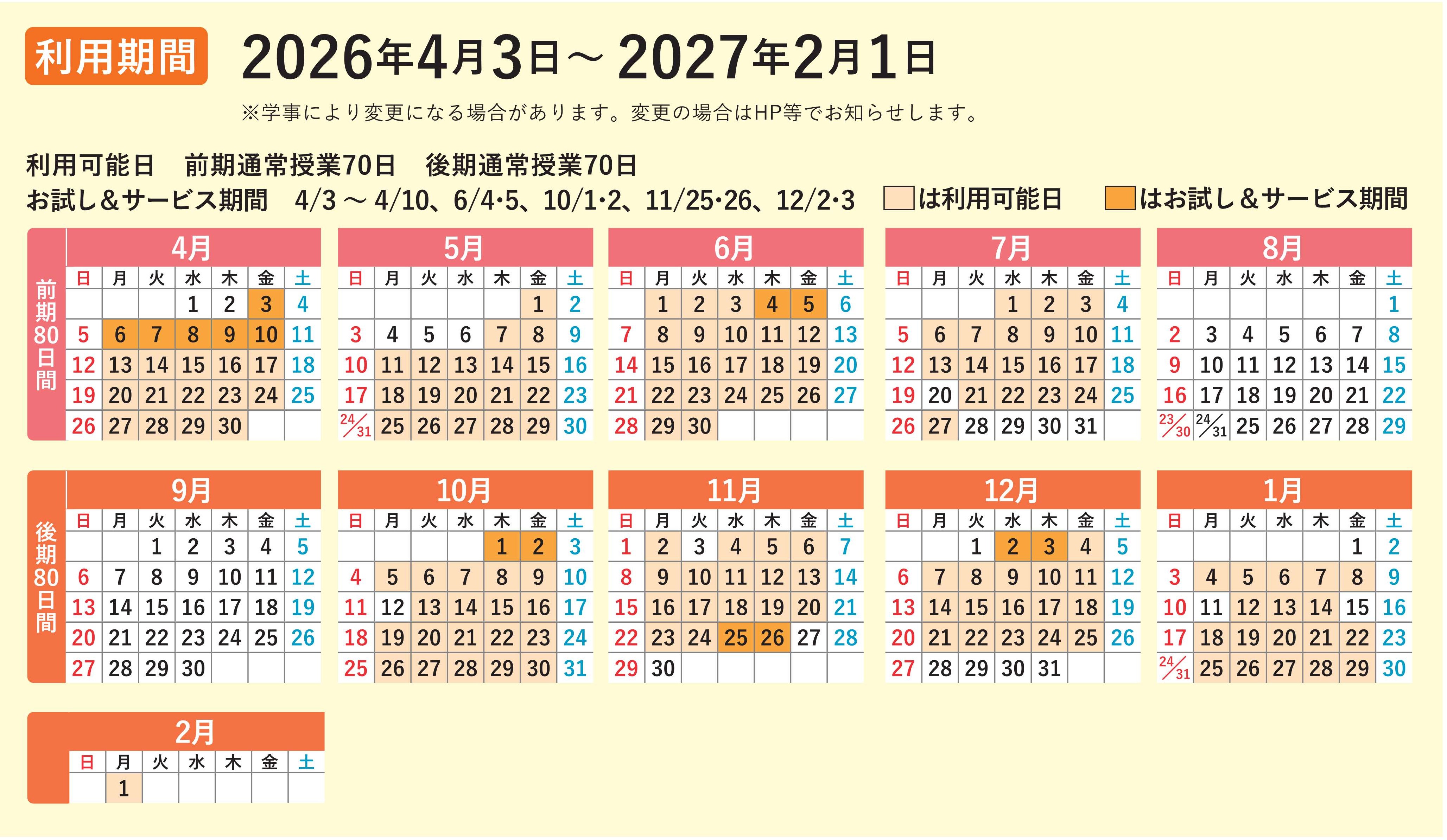 2次締切 2026年4月8日(水) 4/13(月)通常授業から利用可能