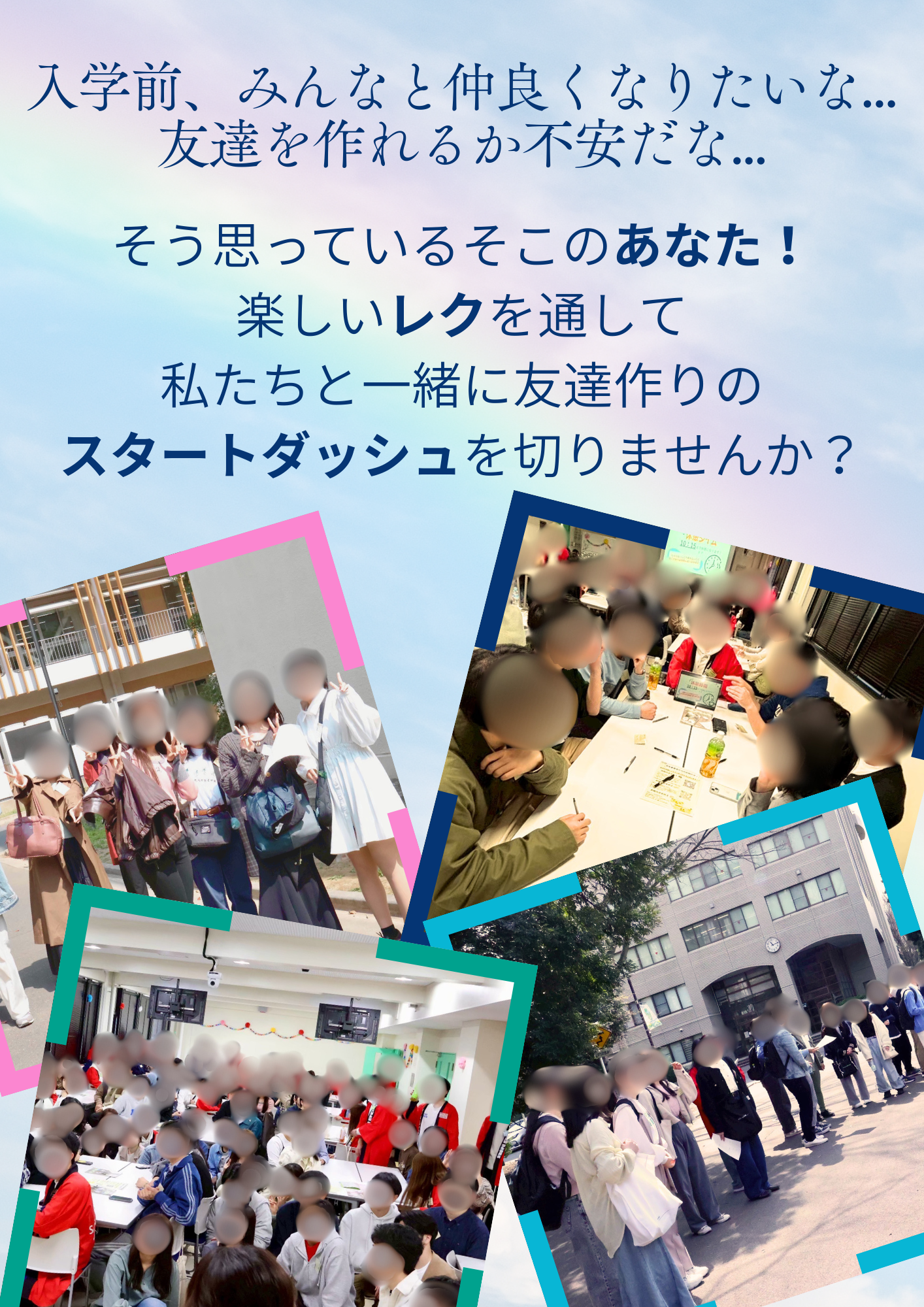 大学が始まる前に友達作りのスタートダッシュを切りましょう!予約はページ下部の参加フォーム(UnivGo!)からお願いします。(只今準備中)
