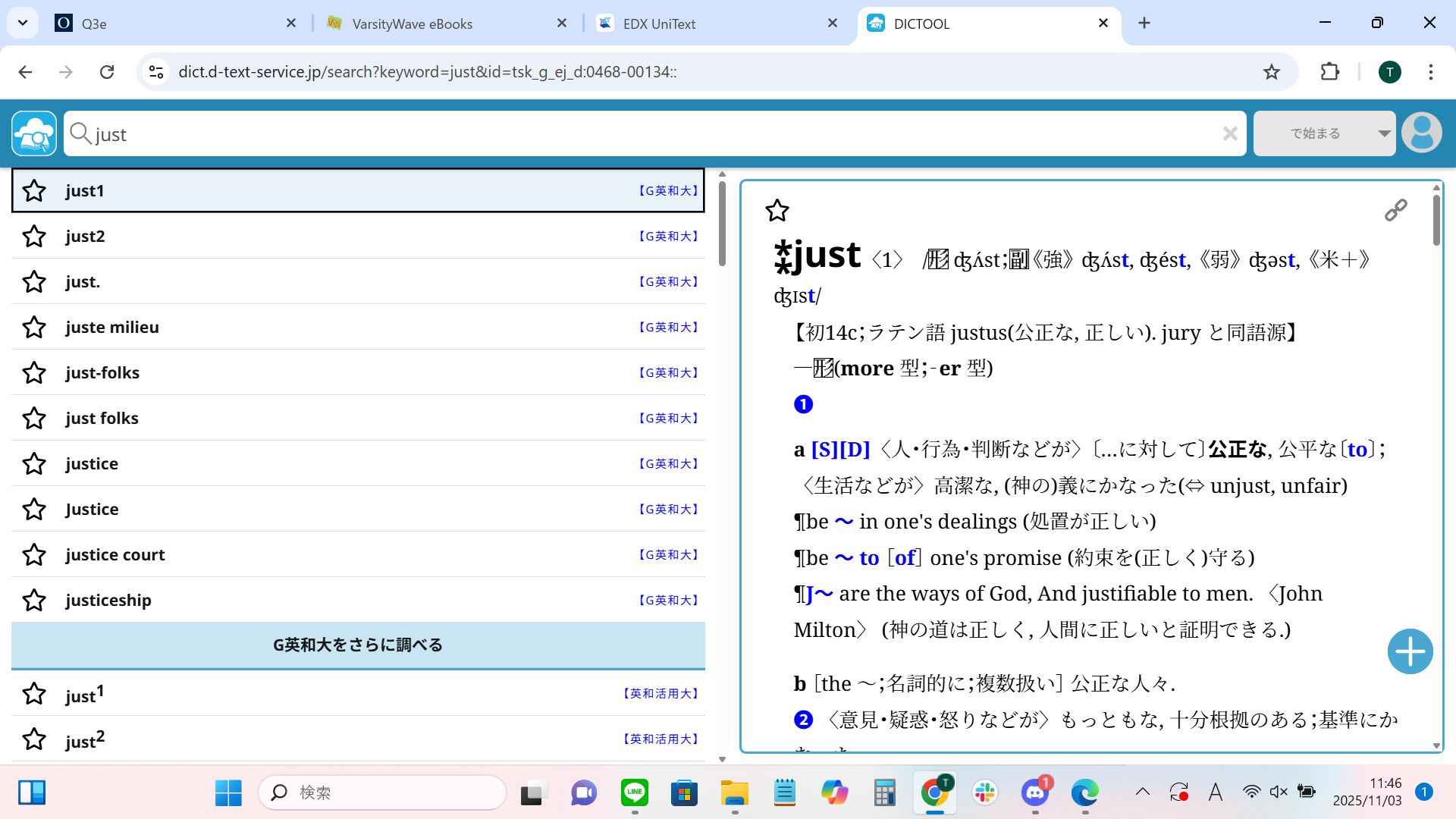 また、調べた単語の説明文の中に他の単語のページに飛ぶことのできるリンクが付いているところも便利だと感じました。説明を読んでいて、「この単語がわからない」となったときに調べなおす必要がないので、勉強やレポート作成の効率が上がりました。