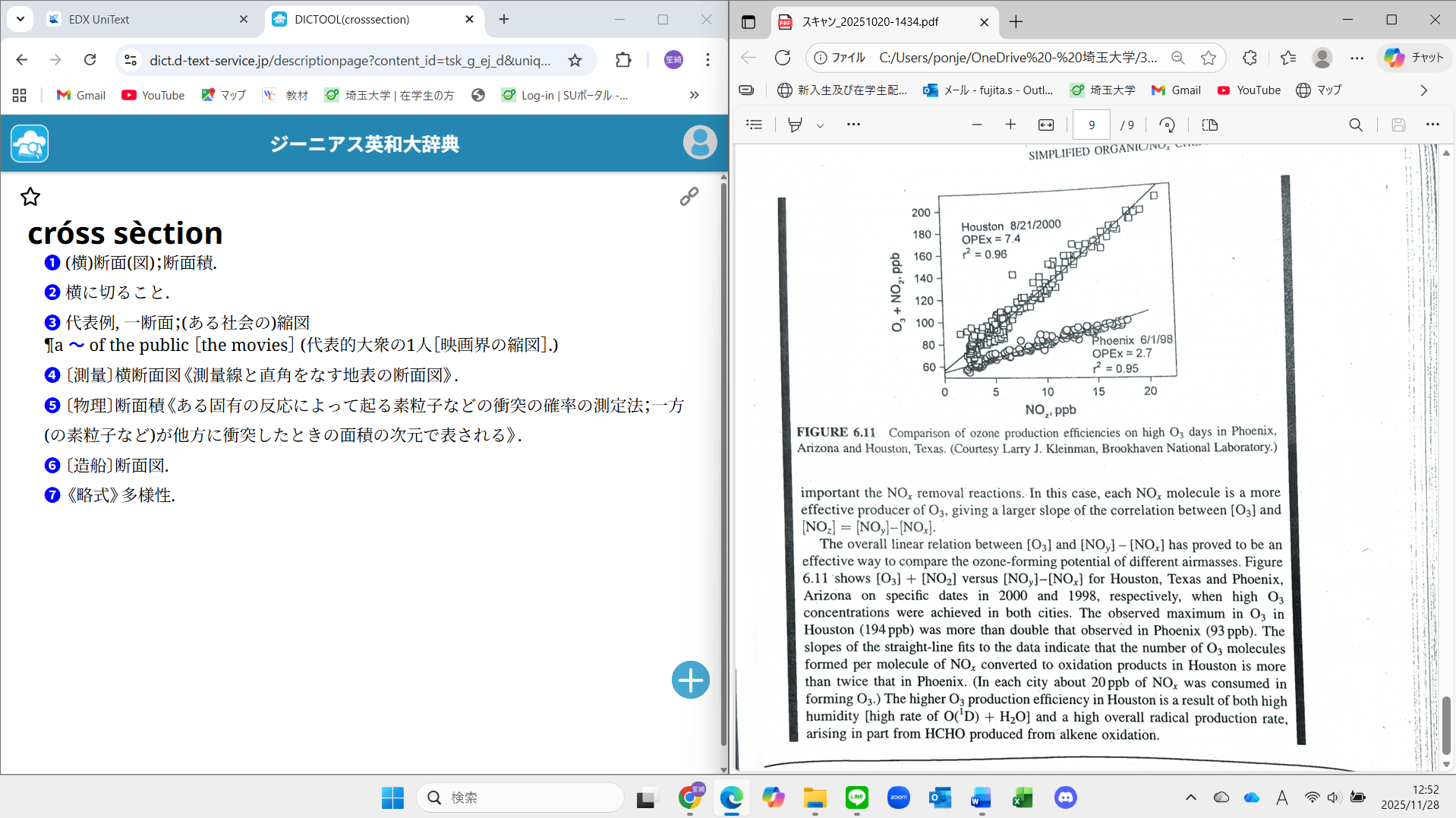 また、DICTOOLは、一般的な英語学習だけでなく、専門分野の学習や大学の講義・課題にも幅広く応用可能です。私の学科の1年次にある、生物学関連の洋書を読み内容を要約する講義では、PC上で読めるよう準備された書物とDICTOOLを二画面表示で同時に開きます。専門的な英文を読み進めながら、不明な単語や用語をその場で調べ、理解を深めることができます。さらに、2年次以降で実験レポートの作成が始まると、英語の学術論文を読む機会が増えますが、この際も、論文PDFとDICTOOLを二画面表示で並べる使い方が非常に効果的です。専門用語や難解な表現を迅速に検索できるため、文献の内容理解がスムーズになり、効率的な情報収集が可能になります。