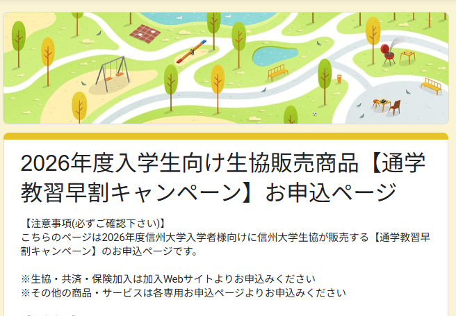 必ず信州大学生協の下記のリンクからからお申し込みください。